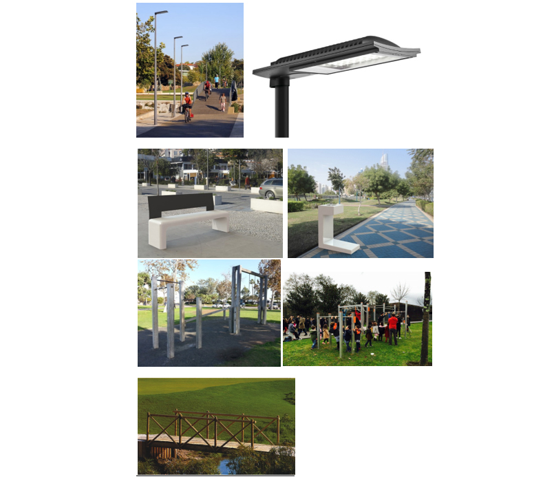 • Aquisição e instalação estações de equipamento desportivo, destinado à prática de “street workout”, também a ser distribuído ao longo dos caminhos ou, se caso tecnicamente for mais correcto, agrupados em dois ou três espaços mais definidos, promovendo a saúde e o bem-estar da população em geral.